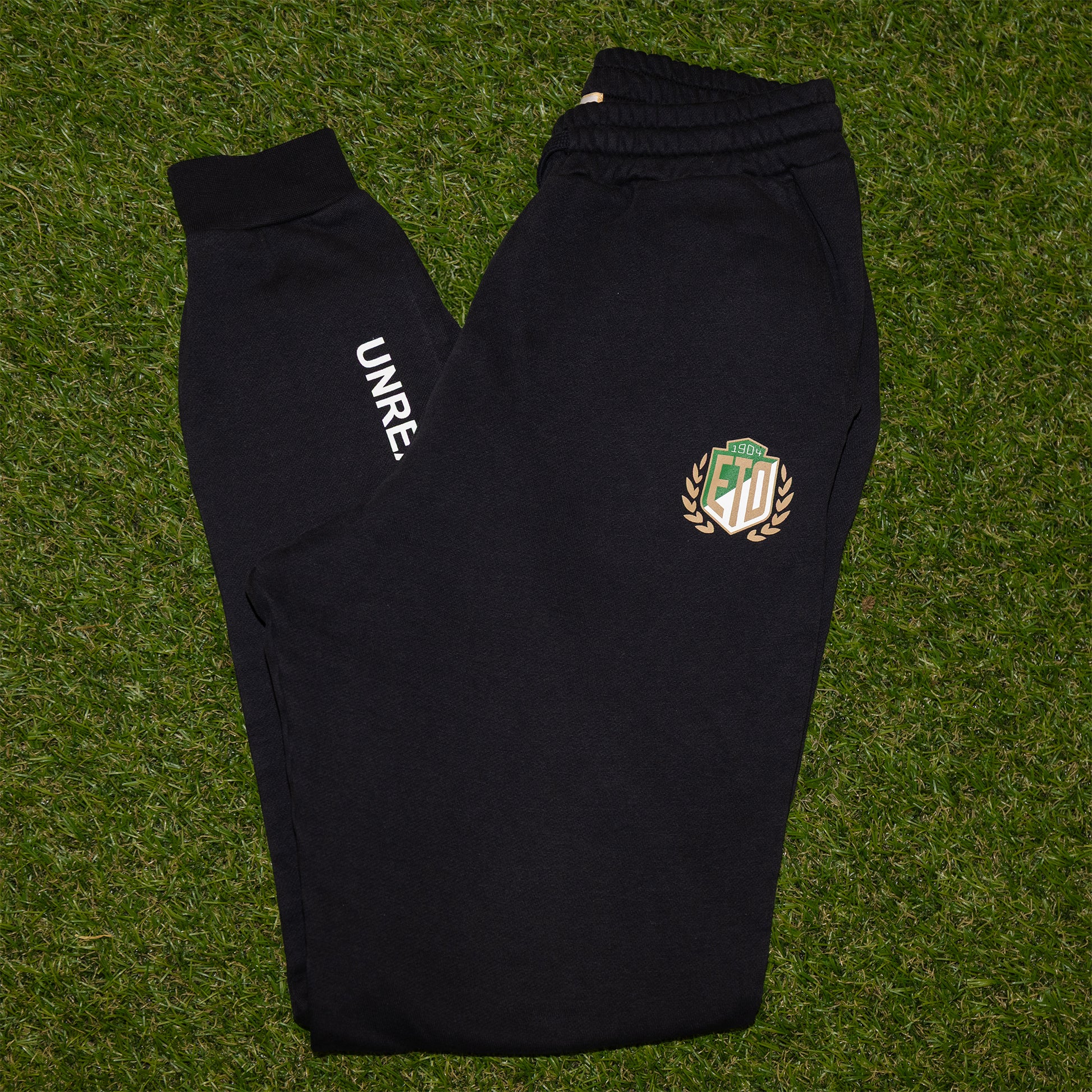 Kényelmes, 320g súlyú melegítőnadrág prémium portugál organikus pamutból. Klasszikus szabás, gumírozott derék és zsinóros megoldás biztosítja a tökéletes illeszkedést. Bal combon ETO FC címer nyomat, szárán fehér „UNREALINDUSTRIES” felirat díszíti. Ideális viselet pályán, utcán vagy hétköznapokra.